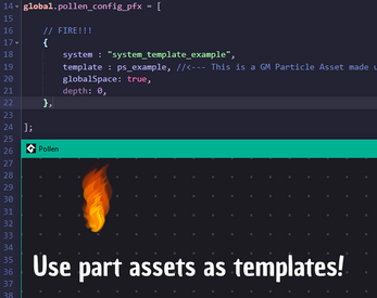 - Can use Pollen particles & GM particle assets as templates for new particles to reduce boilerplate